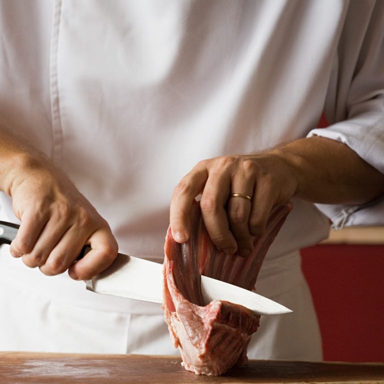 - Wir schneiden Fleisch für Sie perfekt zu.